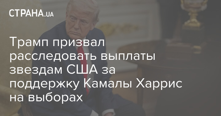 Президент США Дональд Трамп вимагає розслідувати виплати американським зіркам поп-культури за підтримку кандидата від Демократичної партії Камали Харріс на виборах 2024 року.