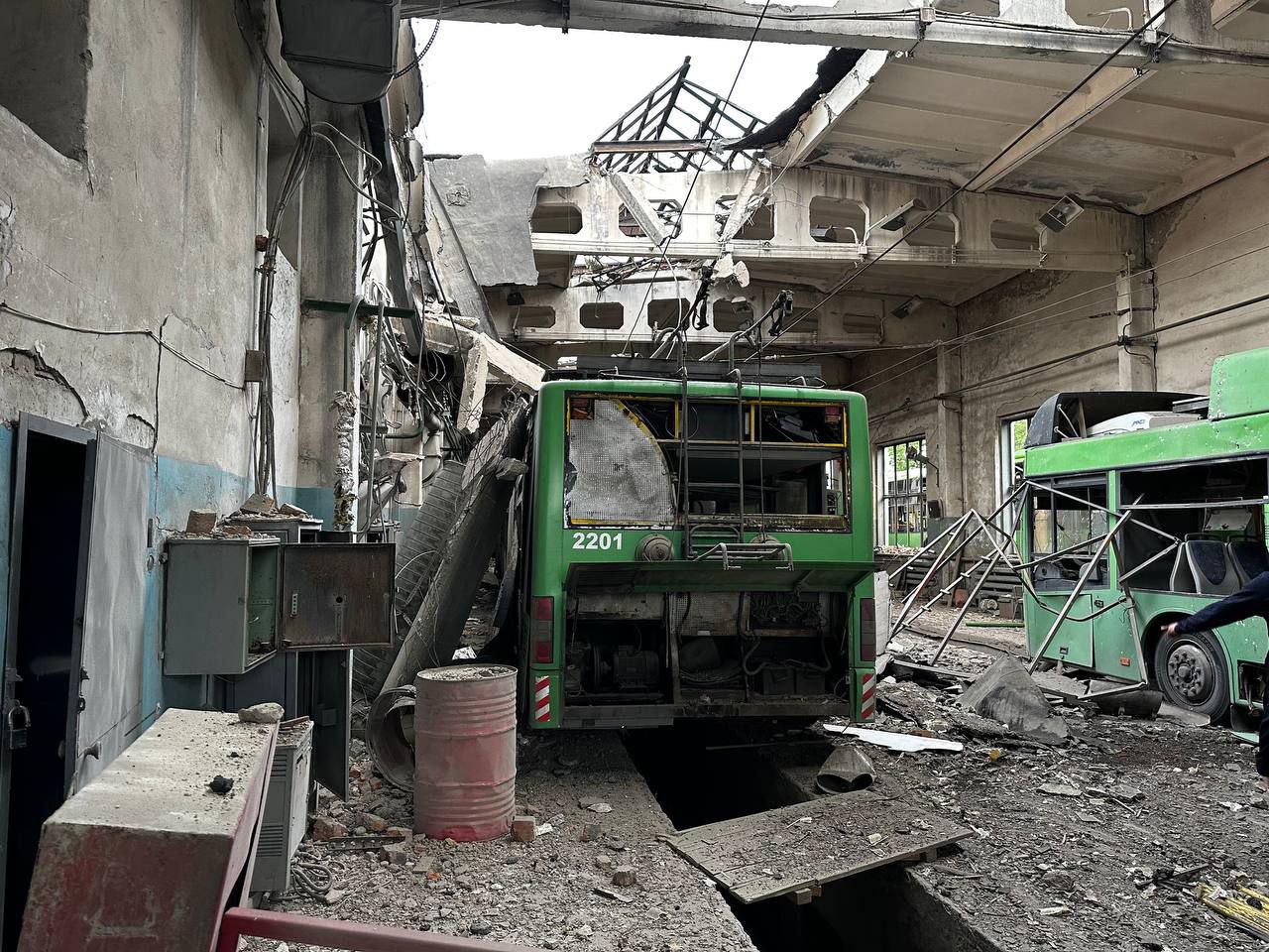 Один тролейбус знищено повністю, ще 18 отримали різні ступені ушкоджень.