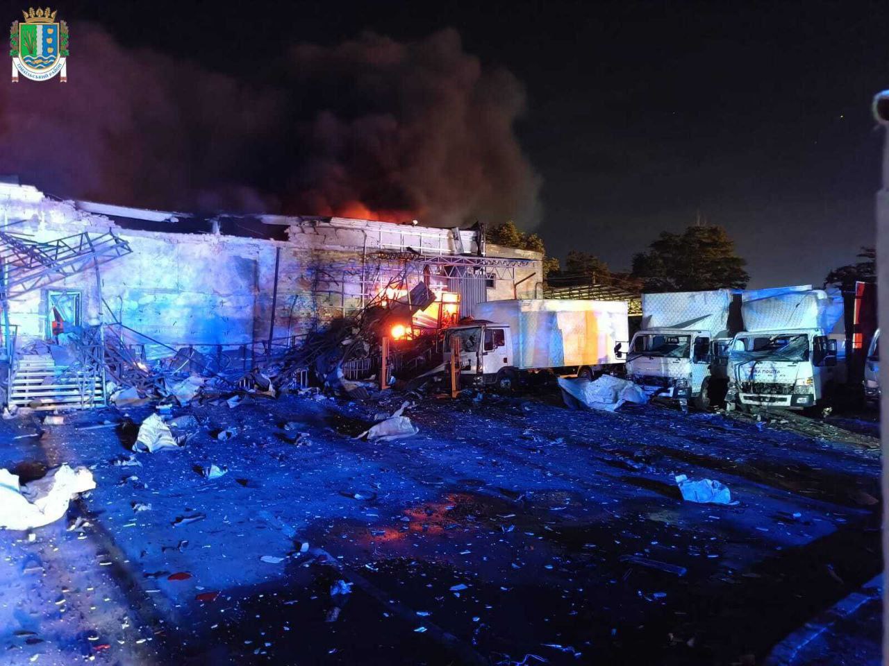 В Ізмаїлі на Одещині після повітряної атаки згорів склад "Нової Пошти". Також пошкоджено вантажні автомобілі.