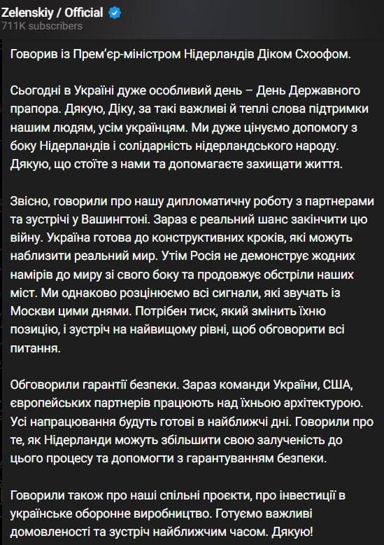 14:26 Вже найближчими днями будуть готові напрацювання "архітектури гарантій безпеки для України", заявив Зеленський