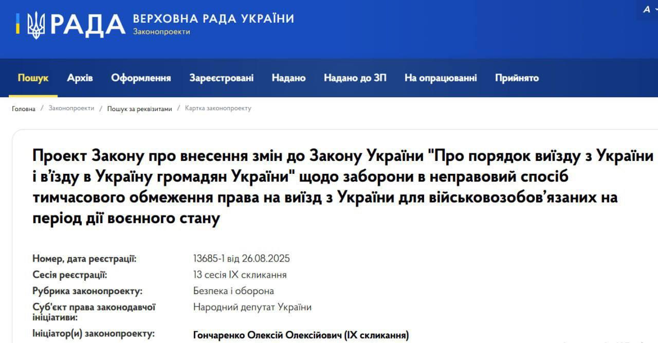 Депутат не уточнює, про який законопроект йдеться. Днями Кабмін вніс до Ради схожий документ - про криміналізацію втечі за кордон у воєнний час.