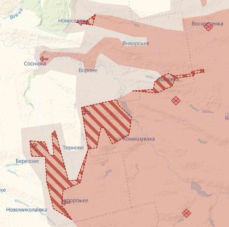 Зокрема, росіяни зайшли до Новоселівки, Березового, майже захопили Маліївку та оточили Тернове.