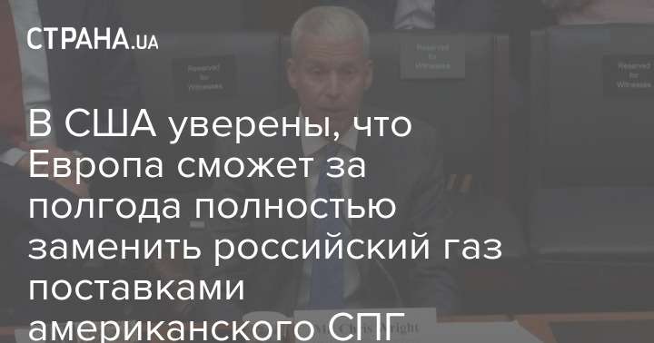 У США впевнені, що Європа зможе за півроку повністю замінити російський газ на постачання американського ЗПГ