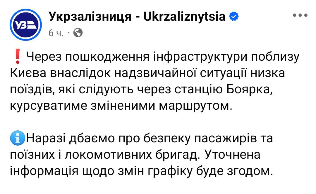 "Укрзалізниця" також повідомляє, що постраждалих не було, а пасажири йдуть далі.