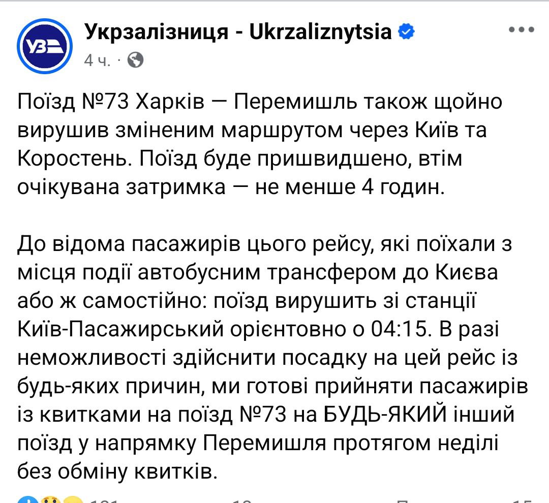 Видання пише, що в момент події, поряд за маршрутом рухався поїзд Харків – Перемишль.