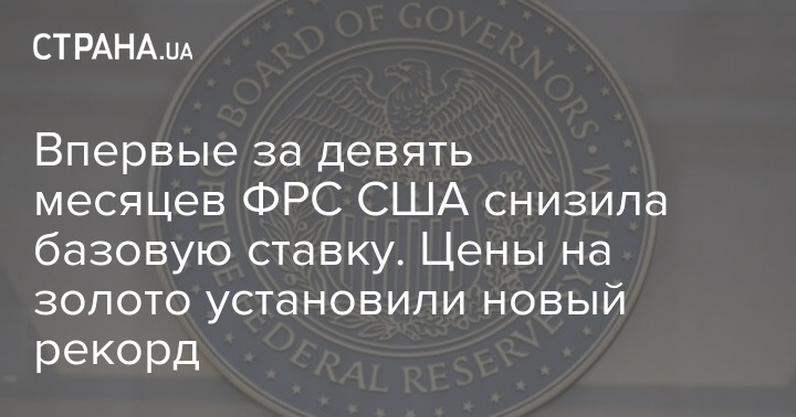 Вперше за дев'ять місяців ФРС США зменшила базову ставку. Ціни на золото встановили новий рекорд