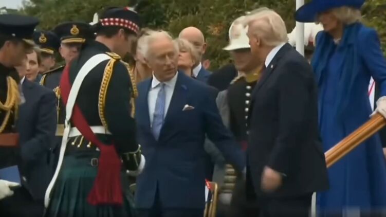 Західні видання зазначають, що Трамп вдруге виявив неповагу до Чарльза: у ході вітальної церемонії президент залишив короля йти позаду, віддавши перевагу спілкуванню з гвардійцем.