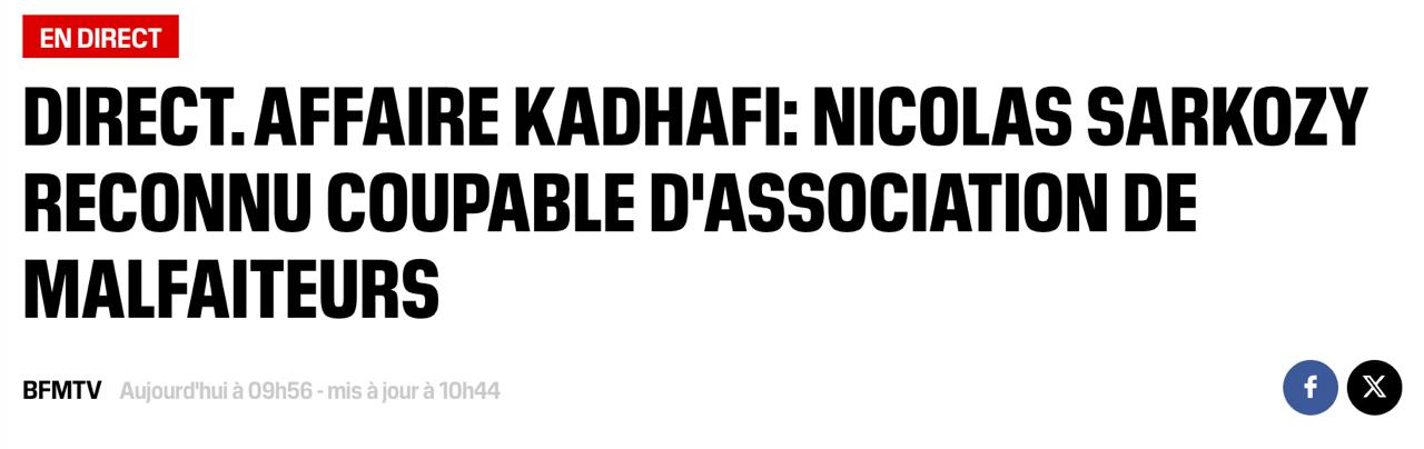 У Франції Кримінальний суд Парижа визнав винним 70-річного екс-президента Ніколя Саркозі у справі щодо фінансування його переможної передвиборчої кампанії 2007 року лівійським лідером Муаммаром Каддафі. Суд призначив Саркозі п'ять років позбавлення волі із відстрочкою виконання вироку та штраф у розмірі 100 тисяч євро.
