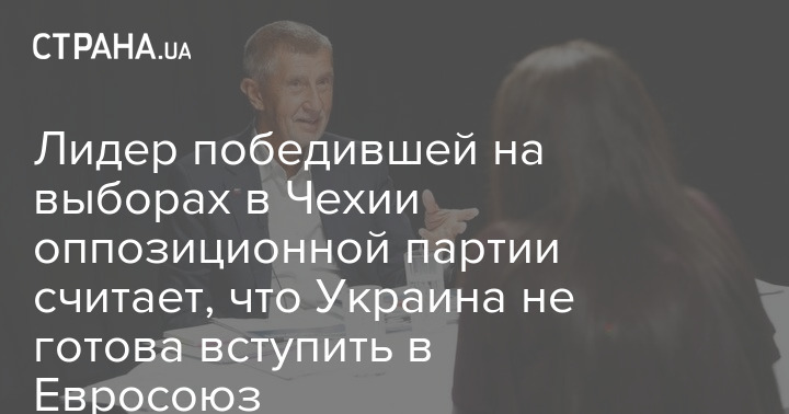 Після перемоги партії ANO на парламентських виборах у Чехії її голова Андрій Бабіш заявив, що Україна не готова до вступу до Євросоюзу.