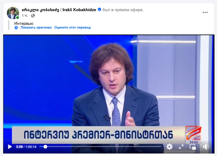 Про це заявив прем'єр-міністр Іраклій Кобахідзе в ефірі телеканалу "Руставі-2".