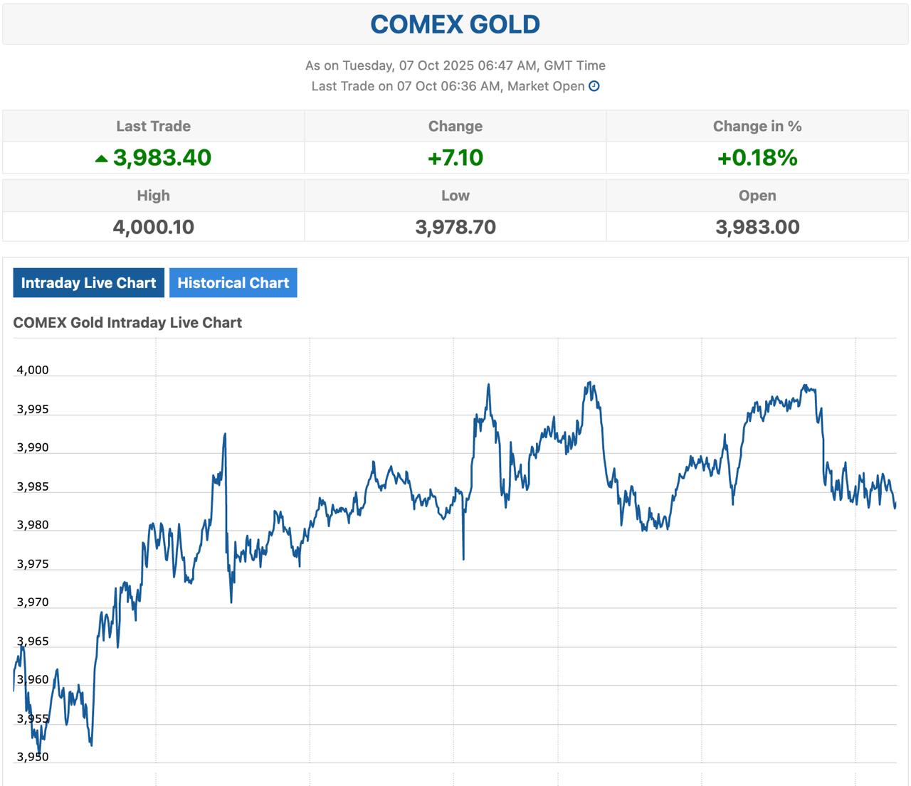 На Нью-Йоркській товарній біржі вночі ціни досягли піку, а на ранок вівторка відкотилися приблизно до 3 980 доларів за унцію.