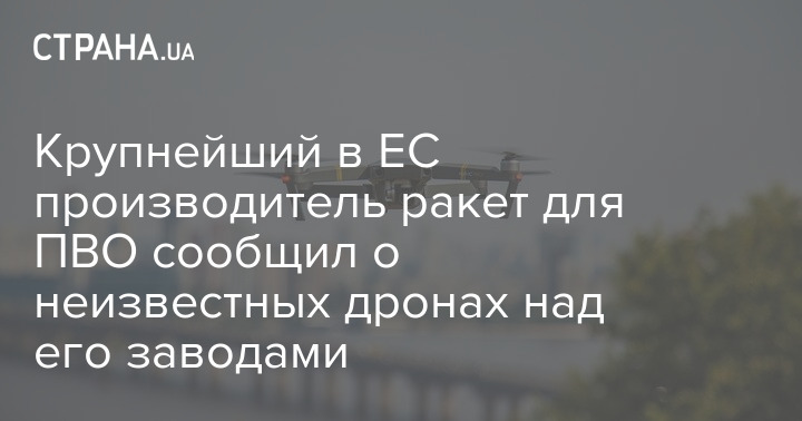 Найбільший у ЄС виробник ракет для ППО повідомив про невідомі дрони над його заводами
