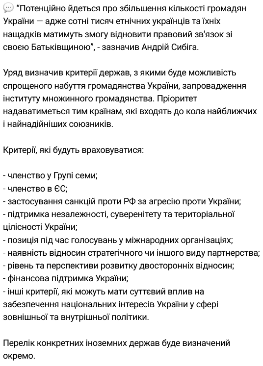 Уряд України схвалив ухвалу про критерії країн, громадяни яких зможуть спрощено отримувати українське громадянство.