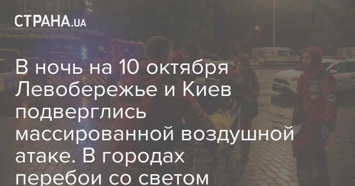 У ніч на 10 жовтня лівобережжя та Київ зазнали масованої повітряної атаки. У містах перебої зі світлом