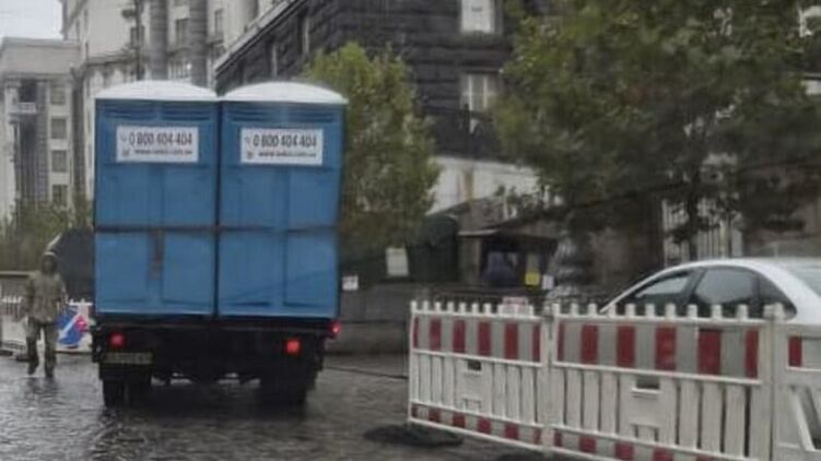 Після нічного обстрілу Києва в урядовий квартал завезли воду та біотуалети. Фото