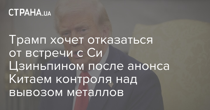 Президент США Дональд Трамп хоче відмовитися від зустрічі з лідером КНР Сі Цзіньпін після того, як Китай анонсував введення експортного контролю над вивезенням рідкісноземельних металів. При цьому він виступив із погрозами Китаю масштабним підвищенням мит.
