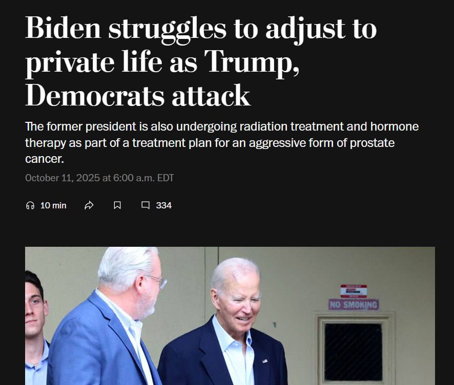 "Дослідники стверджують, що постпрезидентський досвід Байдена безпрецедентний не тільки через нападки Трампа, а й через багатьох демократів, які звинувачують його в нищівній поразці на виборах. Книги, які докладно описують, як помічники Байдена намагалися приховати його слабкість, лише посилили картину занепаду, яка затьмарила його життя після відходу з Білого дому", - пише видання.