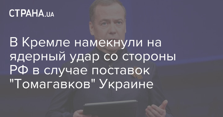 Заступник голови Ради безпеки РФ Дмитро Медведєв заявив, що постачання "Томагавків" Україні "погано закінчаться для всіх і насамперед – для самого президента США Дональда Трампа". У такий спосіб він натякнув на ядерний удар з боку РФ.