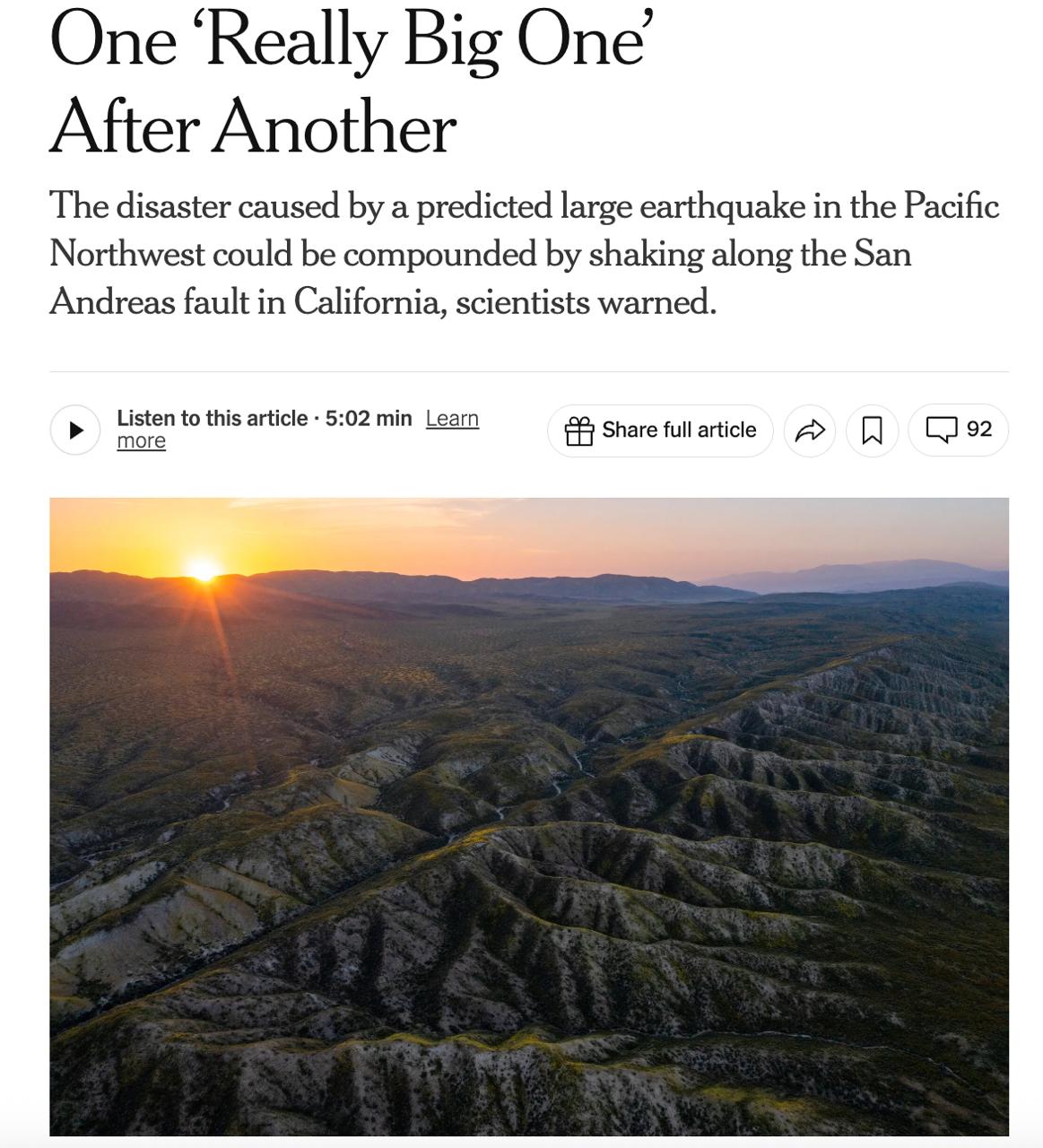 За їхніми даними, за останні 2,5 тисячі років усі найбільші землетруси в Каскадії співпадали за часом із поштовхами на Сан-Андреасі.