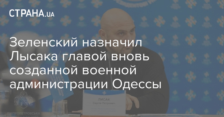 Володимир Зеленський призначив голову Дніпропетровської обласної військової адміністрації Сергія Лисака головою щойно створеної військової адміністрації Одеси.
