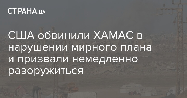 США звинуватили ХАМАС у порушенні мирного плану та закликали негайно роззброїтися