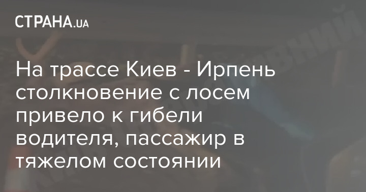 "Приблизно о 20 годині 00 хвилин на автодорозі Київ–Ірпінь, поблизу блокпоста, автомобілем Lexus було скоєно наїзд на лося. Внаслідок ДТП водій загинув на місці пригоди, а його пасажира було доставлено до медичного закладу у важкому стані", - заявили в поліції, додавши, що деталі дорожньо-транспортної події.