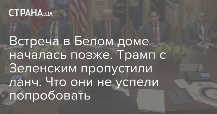 Зустріч президента США Дональда Трампа із президентом України Володимиром Зеленським тривала більше запланованого, тому обід у Білому домі пройшов без них.