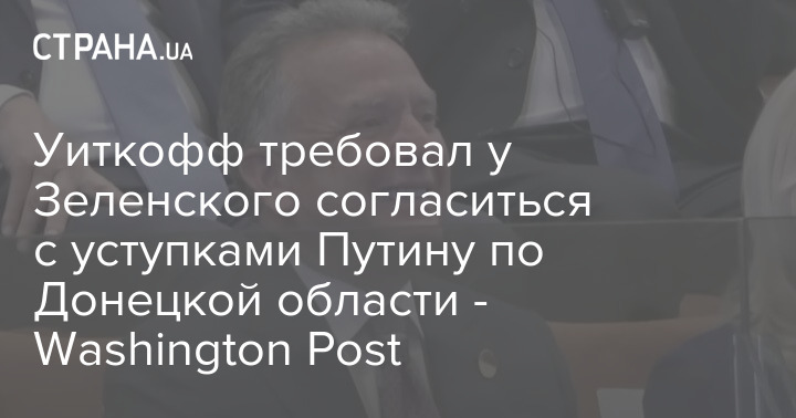 Спеціальний представник президента США Дональда Трампа Стівен Уіткофф у п'ятницю вимагав у президента України Володимира Зеленського погодитися зі поступками Володимиру Путіну по Донецькій області.