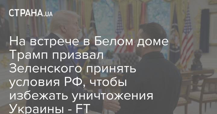 На зустрічі у Білому домі Трамп закликав Зеленського прийняти умови РФ, щоб уникнути знищення України - FT