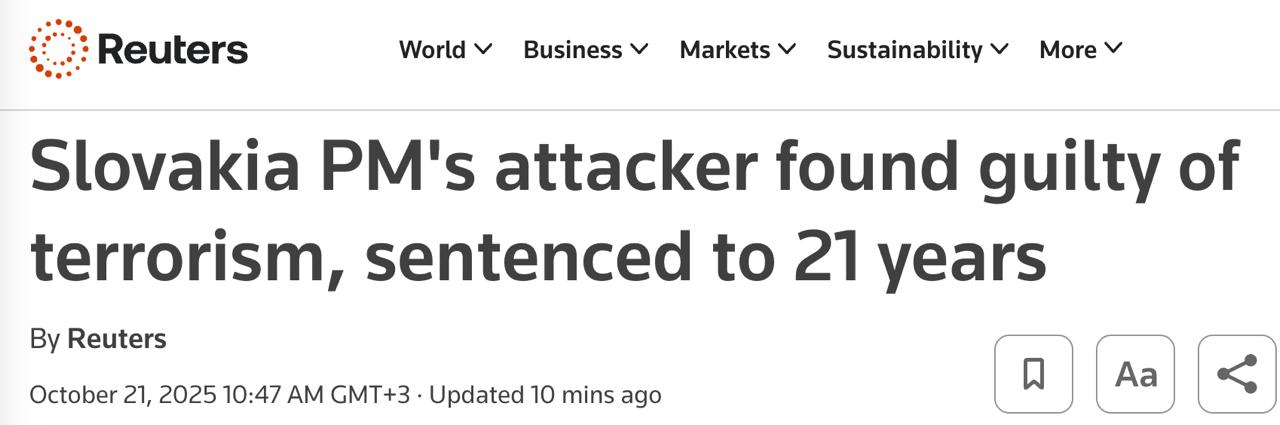 Суд словацького міста Банська-Бистриця засудив до 21 року позбавлення волі 72-річного письменника Юрія Цинтулу, який у травні минулого року стріляв у прем'єр-міністра країни Роберта Фіцо.