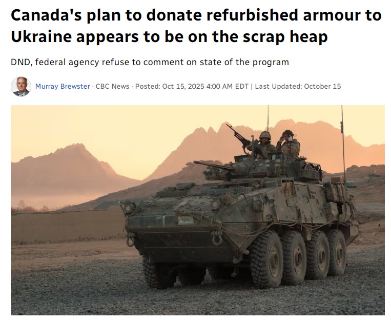 09:50 Канада анулювала контракт на ремонт та передачу Україні 25 списаних бронемашин.