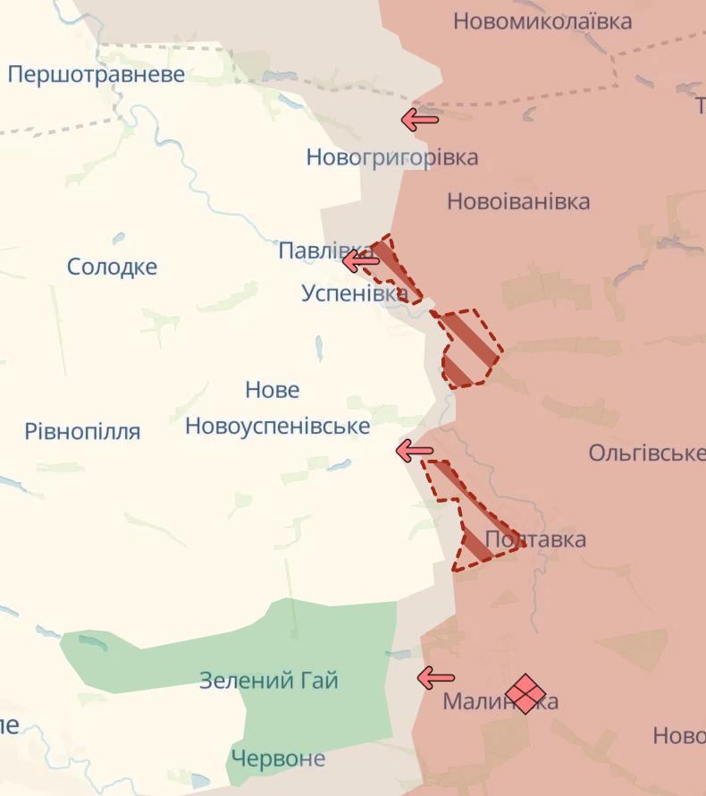 Вони захопили Полтавку в Запорізькій області (про що вже раніше заявляли в РФ) і просунулися на північ від Нововасильівки та Мисливського, а також зайшли до Дніпропетровської області в районі Іванівки.