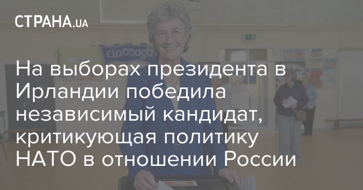 На президентських виборах в Ірландії перемогла Кетрін Конноллі – незалежний кандидат, яка критикує політику НАТО щодо Росії, а також виступає проти нарощування військових витрат Європою.