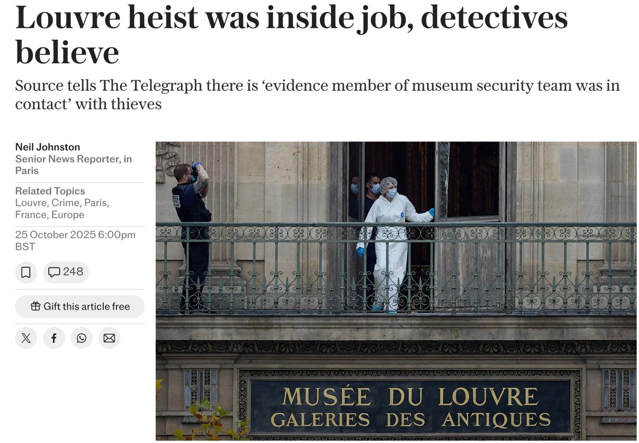 Багато відомих колишніх грабіжників ювелірних виробів також упевнені, що на Лувр навів хтось зсередини, пише New York Times.