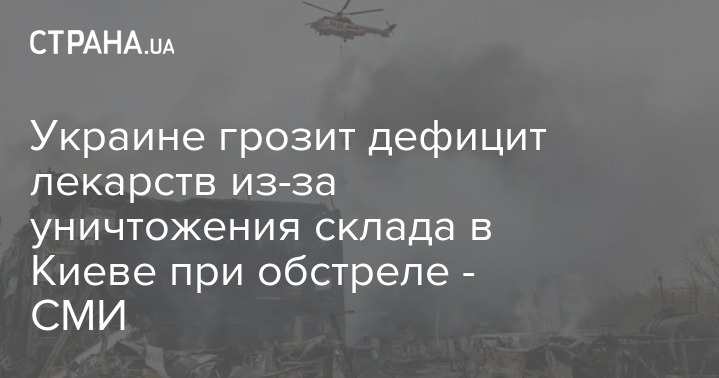 Через руйнування 25 жовтня через обстріл київського складу компанії "Оптіма-Фарм" Україна може зіткнутися з нестачею ліків. На складі зберігалось 20% місячного запасу медикаментів країни.