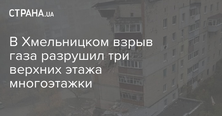 У Хмельницькому внаслідок вибуху газу зруйновано три верхні поверхи багатоповерхівки. У ході події постраждали п'ятеро людей.