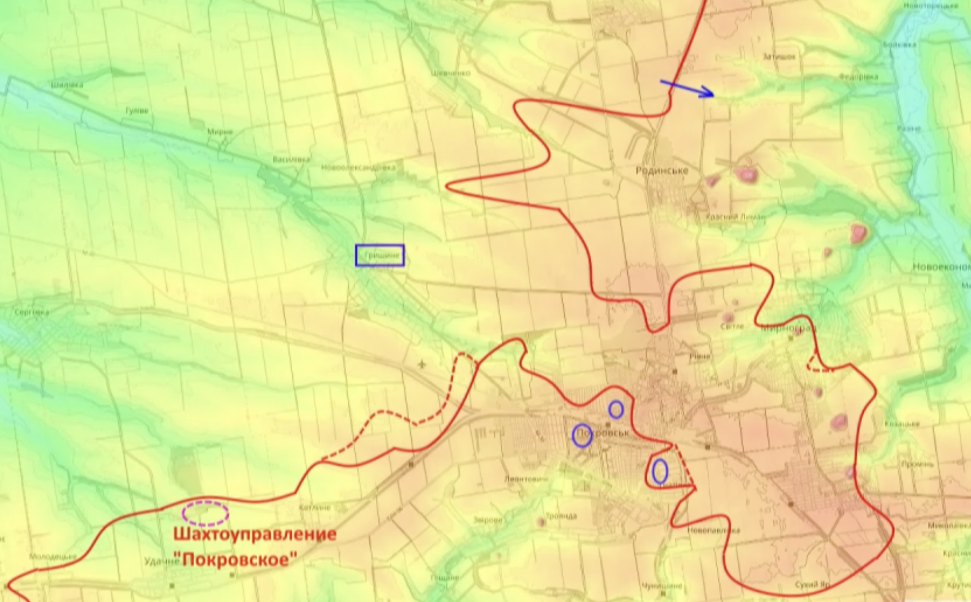 Deep State пише, що росіяни продовжують накопичувати сили в самому Покровську - у місті вже кілька сотень російських військових. На південь Покровська зайшли пілоти FPV-дронів, які знищують українську логістику та б'ють за позиціями ЗСУ. Вже зламана логістика у напрямку Мирнограда та всієї агломерації міста.