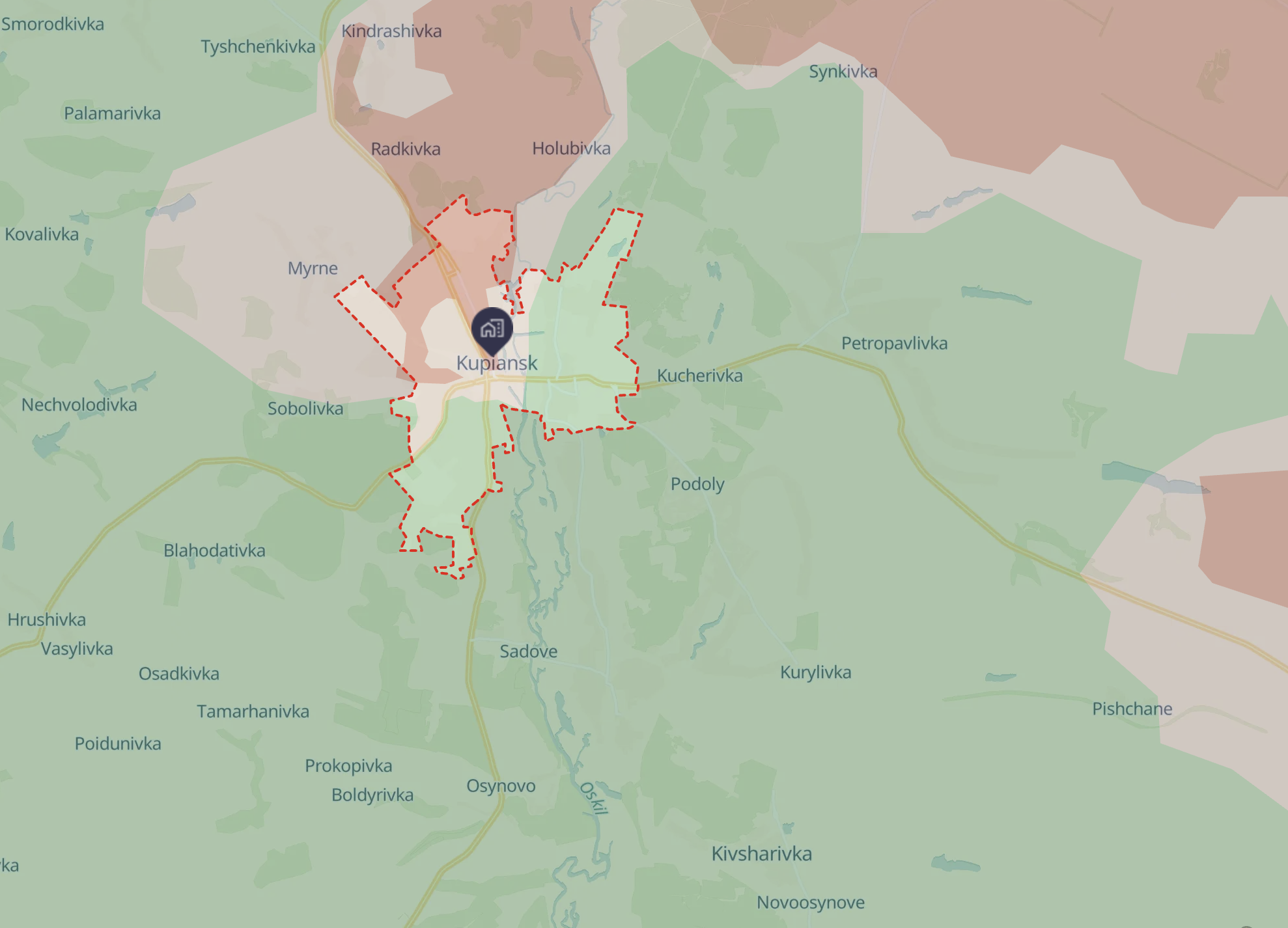 За картою Deep State, Куп'янськ також не оточений - російські війська контролюють ділянки на півночі, заході та в центрі міста.