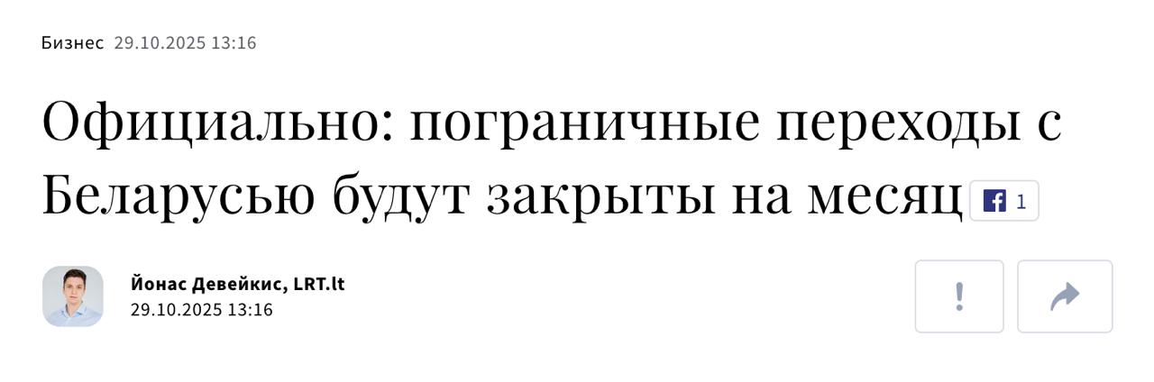 Уряд Литви вирішив з 30 жовтня до 30 листопада закрити кордон з Білоруссю.