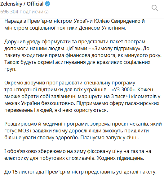 Інформація була озвучена президентом після зустрічі із прем'єр-міністром Юлією Свириденко.