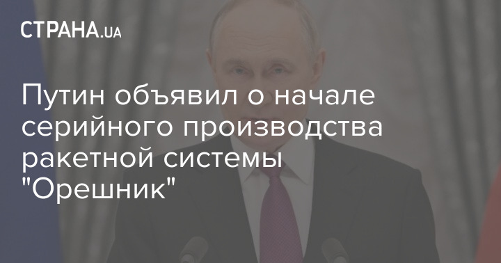 Глава Кремля Володимир Путін заявив, що Росія розпочала серійний випуск ракетної системи "Горішник".