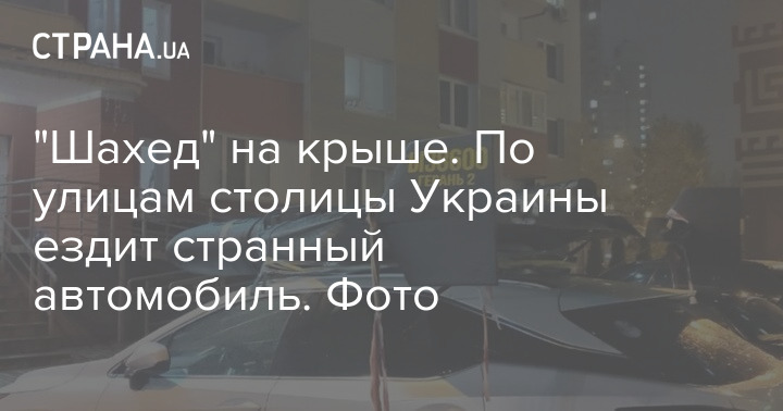 У столицю України помітили автомобіль, на даху якого прив'язаний російський дрон-камікадзе.