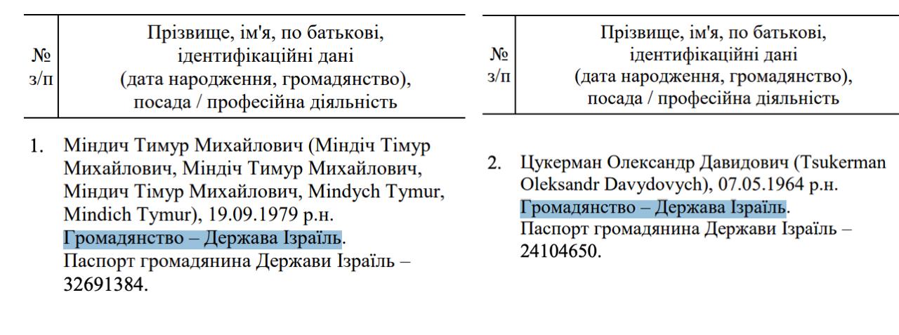 Згідно з указом, Міндіч та Цукерман мають громадянство Ізраїлю, при цьому їхнє українське громадянство не згадується. Таким чином, обмеження для громадян України ними не поширюються.