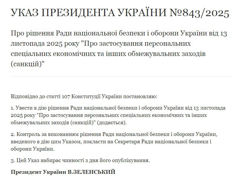 Президент України Володимир Зеленський підписав ухвалені Радою національної безпеки та оборони санкції проти бізнесменів Тимура Міндіча та Олександра Цукермана, які є фігурантами справи про корупцію в енергетичному секторі.