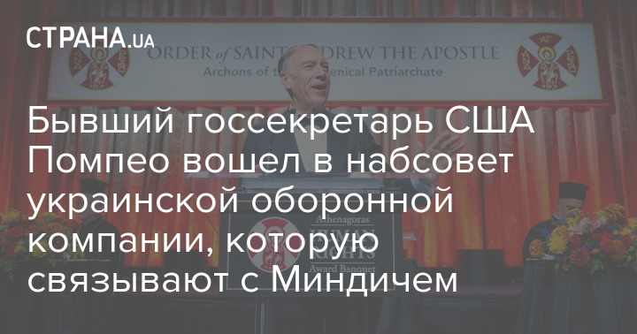Колишній держсекретар США Майк Помпео увійшов до наглядової ради української оборонної компанії Fire Point, яку пов'язують із обвинуваченим у корупції бізнесменом Тимуром Міндічем, близьким до президента України Володимира Зеленського.