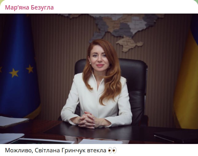 Міністр енергетики Світлана Грінчук, яка фігурує у корупційній справі бізнесмена Тимура Міндіча, могла втекти з України.