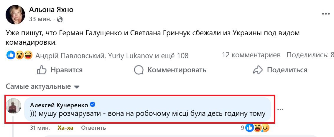 Безугла запідозрила, що міністр енергетики Грінчук втекла з України. Нардеп Кучеренко заперечує
