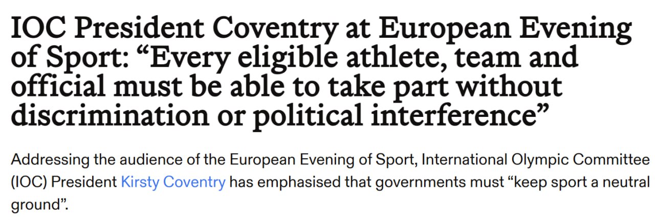 А перед цим президент МОК говорила, що виступає проти усунення країн від участі в Олімпіадах через війни і має намір розпочати переговори про можливе повернення Росії на Ігри.