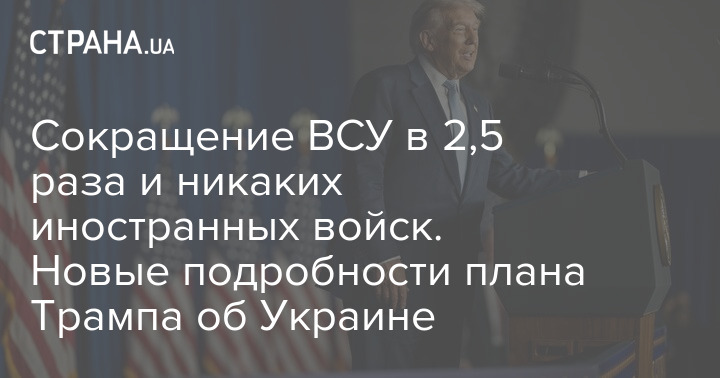 Журналіст британського видання The Economist Олівер Керрол наводить нові подробиці мирного плану президента США Дональда Трампа про Україну. Йдеться про скорочення чисельності ЗСУ у 2,5 рази та відсутність іноземних військ в Україні.