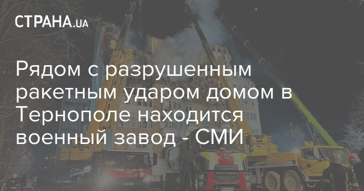 Поруч із зруйнованим ракетним ударом будинком у Тернополі знаходиться військовий завод - ЗМІ